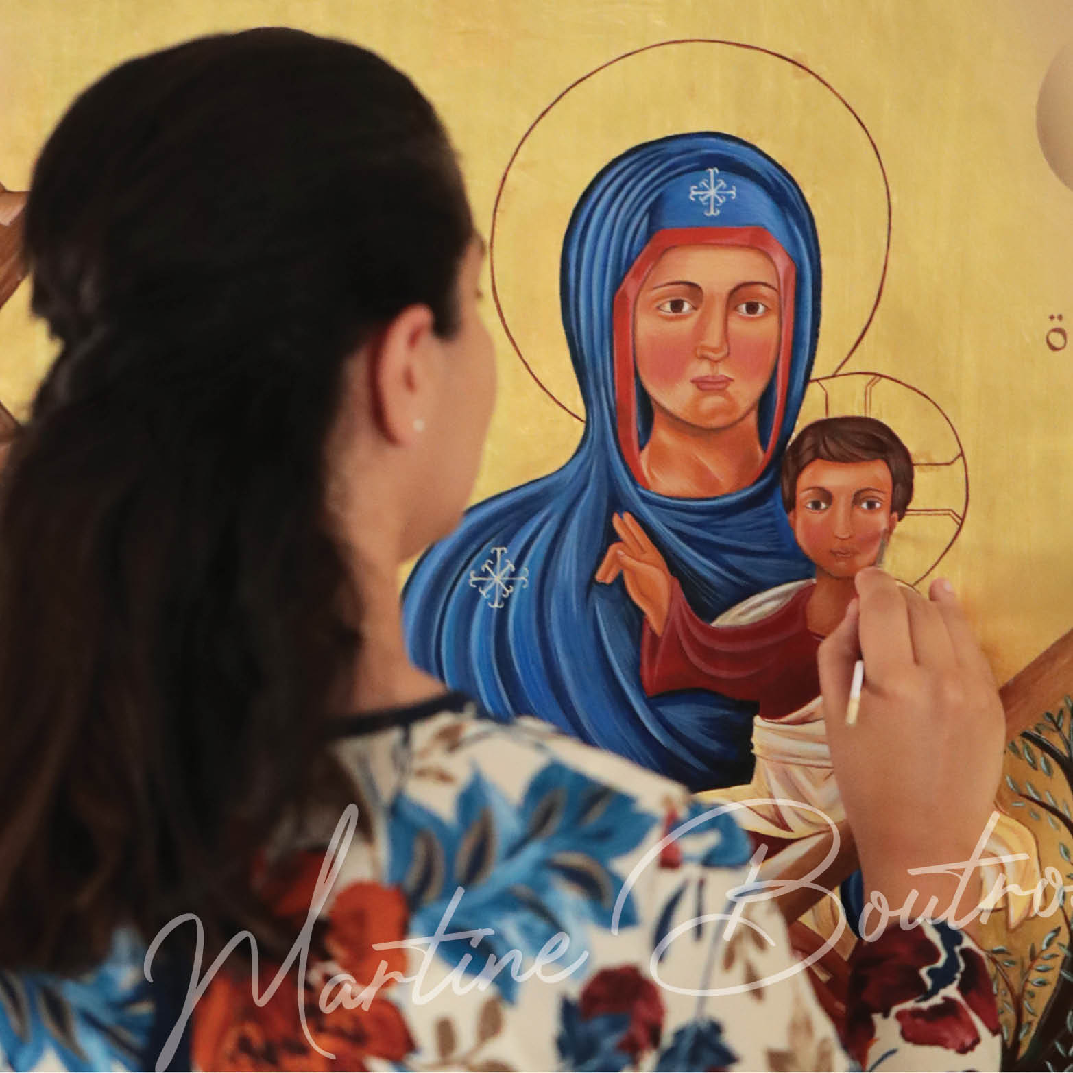 في وجه أمّ الله جمال ورقّة وحنان، تنتظر لتستقبل، وترافق العائدين مودّعةً. عينا الطفل يسوع كعيني أمّه، نرى فيهما وعيًا ورشدًا، تحدّقان إلى البعيد، تريان صليب الخلاص وتشتاقان إلى الفداء.