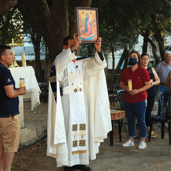 19/08/2021On August 14, 2021, on the Feast of the Assumption of the Virgin Mary, the parish of Mar Ousanious Aabeidat, led by Father Elie Lahoud, celebrated the blessing and installation of the “Our Lady of Wataya” icon. Painted by local artist Martine Nabil Boutros, this icon is a powerful reminder of the village’s spiritual heritage, commemorating the ascetics who once inhabited the caves of Mar Semaan, Mart Moura, Mar Antonios the Great, and the Aabeidat Valley. In their pursuit of redemption, these ascetics consistently sought the intercession of Mary, Our Lady of the Ascetics.